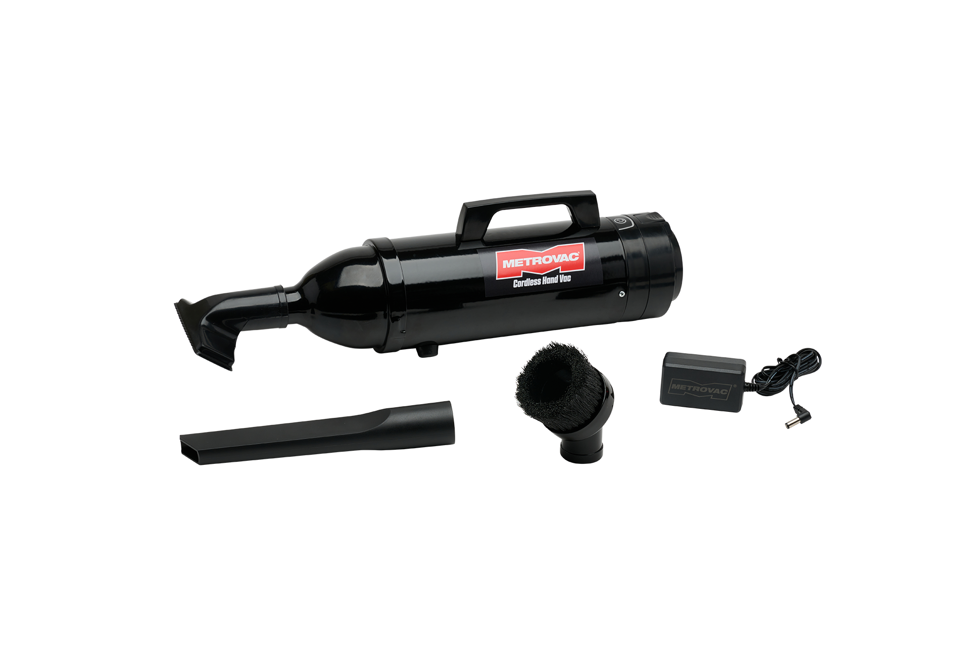 The MetroVac Cordless Hand Vac is compact and easy to use, weighing in at 3 lbs, 5 ounces. It features HEPA filtration with a convenient shake out disposable bag and a complete set of attachments for home, auto or shop use.