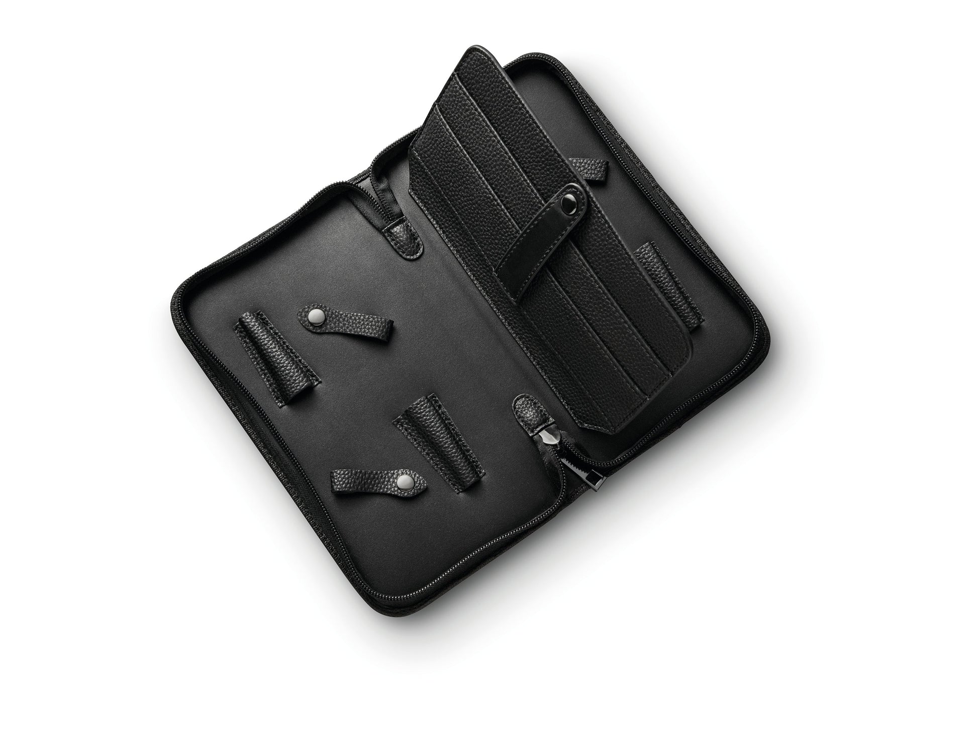 A case for storing 4 pairs of shears and accessories. Handy pencil case format. Fits on any tool stand. High-quality synthetic leather, pleasant to the touch and easy to clean.